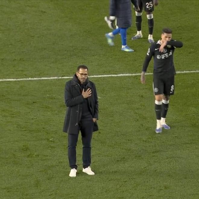 赛后谢场时,这位41岁的本土少帅以手抚胸,向远征而来的切尔西球迷致歉,但他的道歉显然没有起到任何效果,随队远征的切尔西球迷对他送上刺耳的嘘声。而早在切尔西丢掉第2球时,远征球迷区就已经传来了“罗塞尼尔滚蛋”的口号。